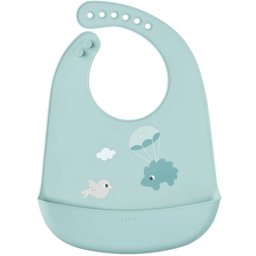 Feito em silicone macio, atóxico e super confortável, ele conta com um design moderno e um bolso pega-migalhas inteligente, ideal para evitar sujeiras e manter o bebê limpinho.