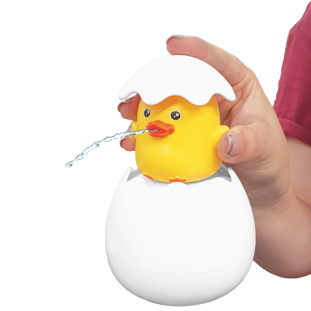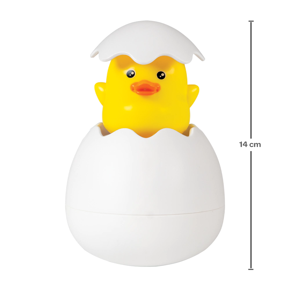 Mergulhe-o na água, retire e ele vira uma duchinha. Além disso, ao pressionar a casca do ovo ele esguicha água. Os pequenos vão amar!
