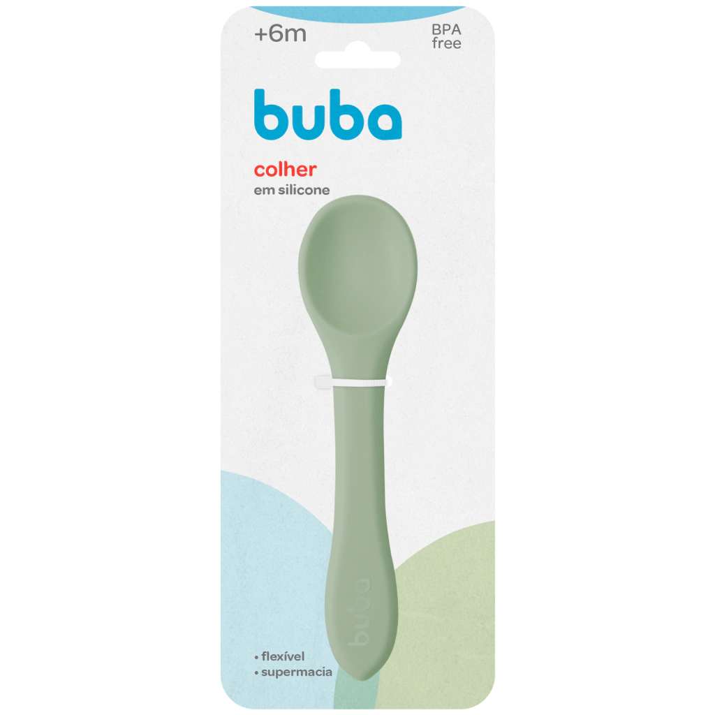 Colher em silicone flexível supermacia bebe livre BPA Buba
