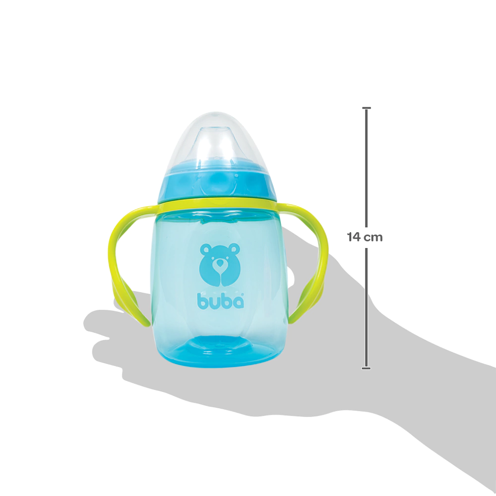 É perfeito e ideal para a transição da mamadeira pro copo. Possui alças para facilitar que a criança segure o copo, é antivazamento, permitindo à criança beber o líquido sem derramamentos, com bico super macio de silicone também ajuda a evitar que o palato e gengiva da criança sejam machucados e tampa para manter o bico protegido de insetos e impurezas.