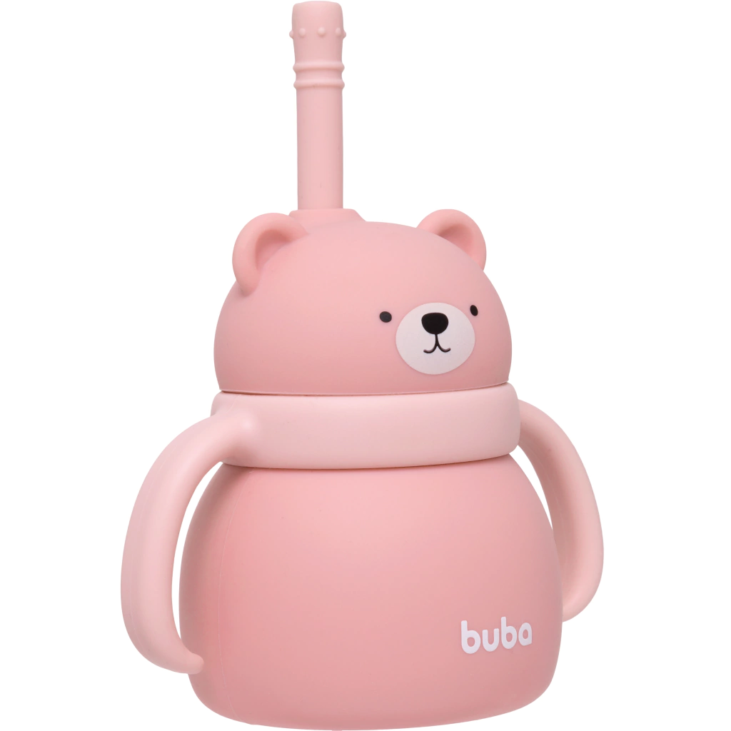 O copo de silicone com canudo da Buba é ideal para auxiliar no desenvolvimento do hábito de beber líquidos de maneira regular e independente.