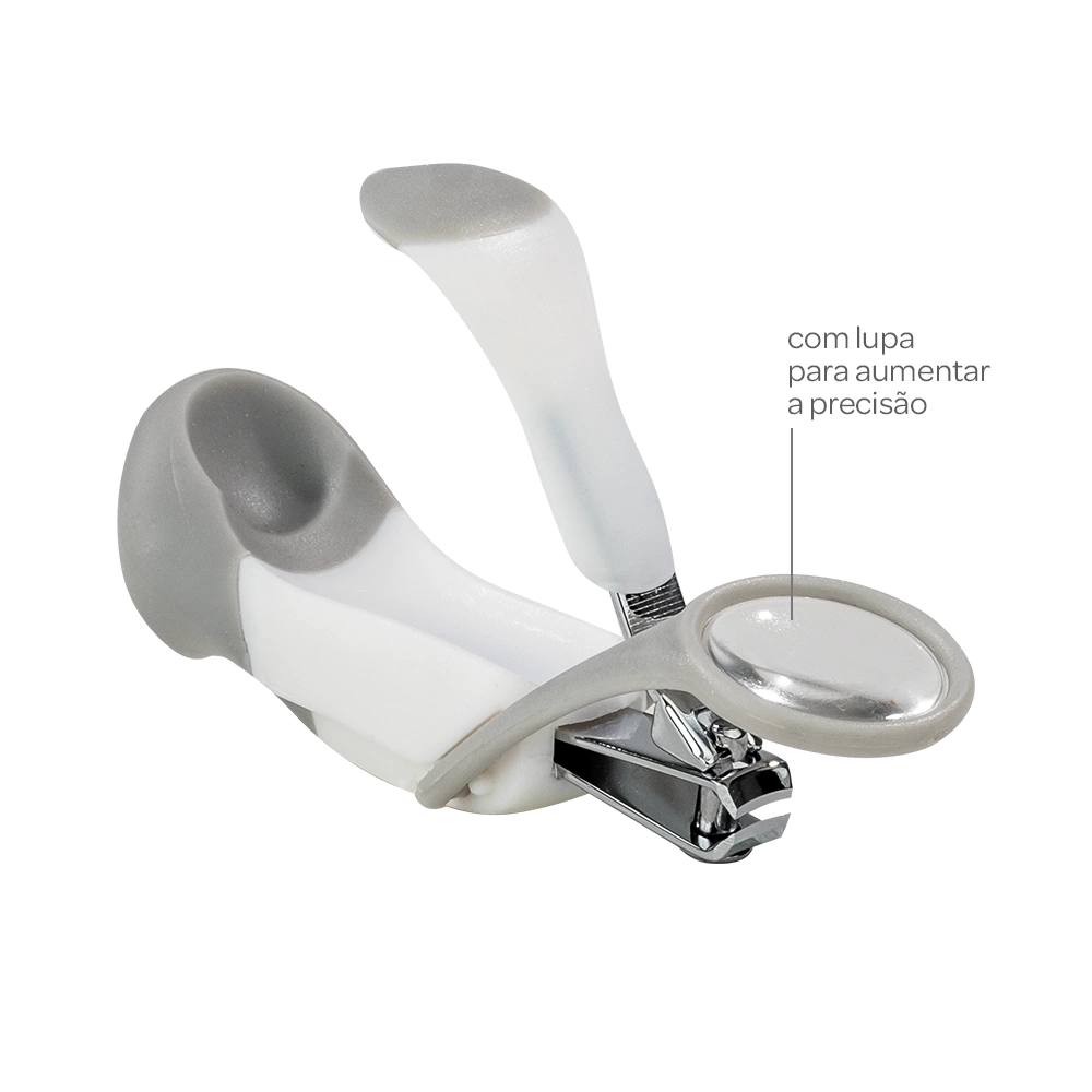 O cortador de unha para bebê com lupa, foi desenhado especialmente com bordas, curvas, e lupa de aumento para cortar facilmente as unhas do bebê.