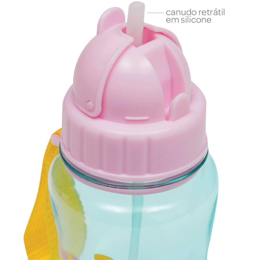 A garrafinha vai tornar a hora da refeição do seu bebe mais pratica e divertida, pois a estampa colorida vai manter a atenção nas refeições, o que torna esse momento mais agradável e tranquilo para os pais e para as crianças.