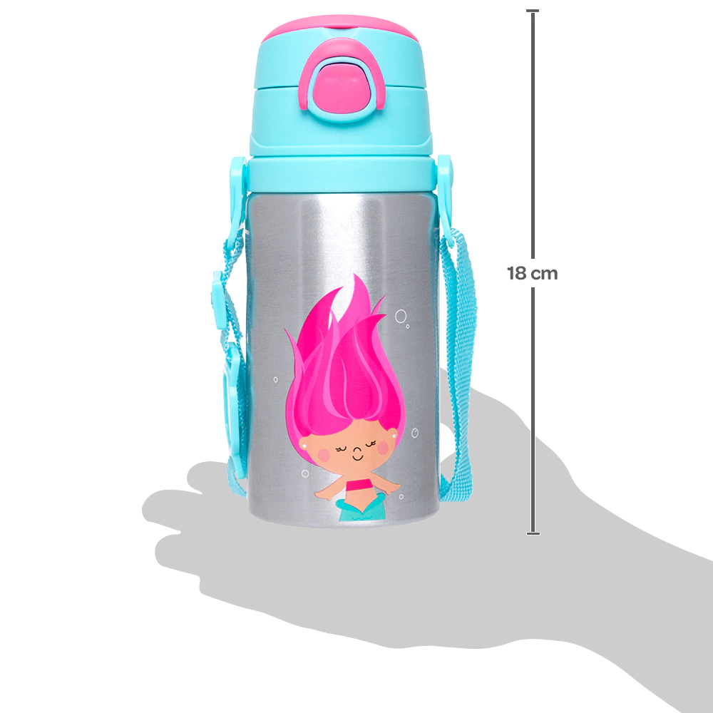 Produzida em alumínio, possui canudo em silicone, tampa com trava de segurança e cordinha anti queda. Ótima para levar em viagens e passeios.