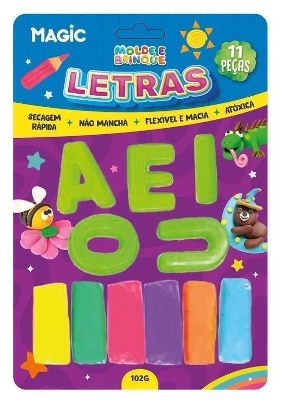 O kit contém 6 cores vibrantes de massa de modelar, permitindo que as crianças explorem sua criatividade e façam diversas criações.