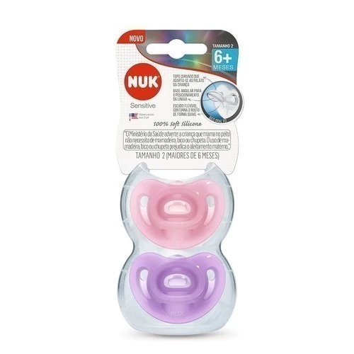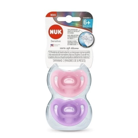 As chupetas Sensitive da NUK foram desenvolvidas em 100% silicone soft flex extra macio, com design moderno em peça única, alça integrada para evitar perdas e cores agradáveis. Seu formato contorna o rosto do bebê de maneira suave sem cobrir o nariz do pequeno facilitando a respiração.