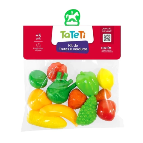 O kit vem com frutas e verduras para brincar de mercadinho e fazer comidinhas!