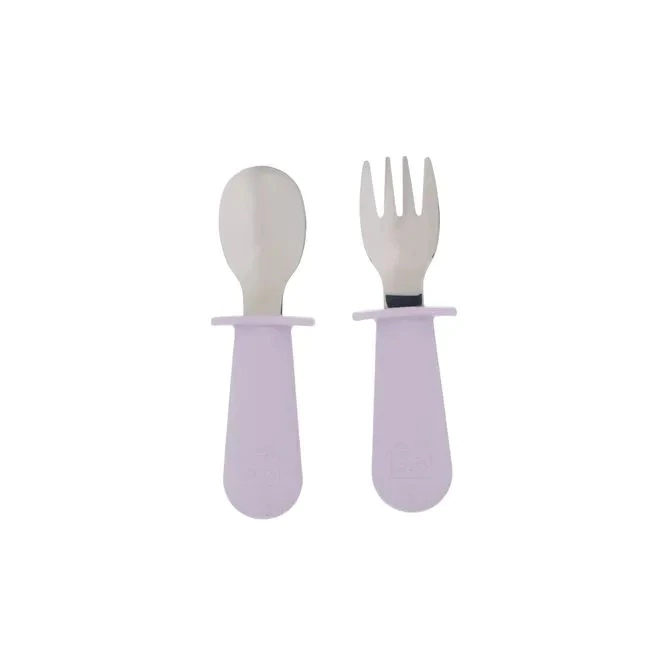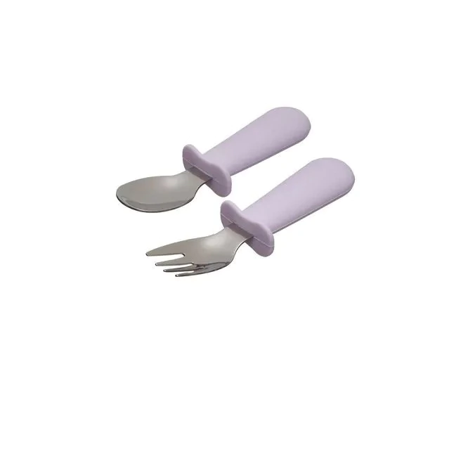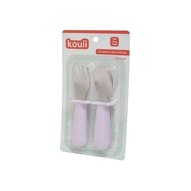 - Kit de talheres com um garfo e uma colher com cabo macio em silicone