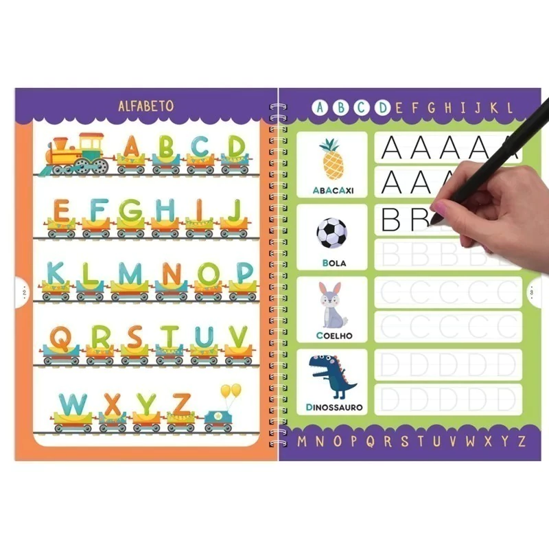 Este livro contém atividades que ensinam o alfabeto. A tinta especial da caneta faz com que o livro seja reutilizável: depois de um tempo, ela apaga sozinha e com isso a atividade pode ser praticada muitas vezes. As páginas são embaixo relevo, o que facilita o contorno das letras.