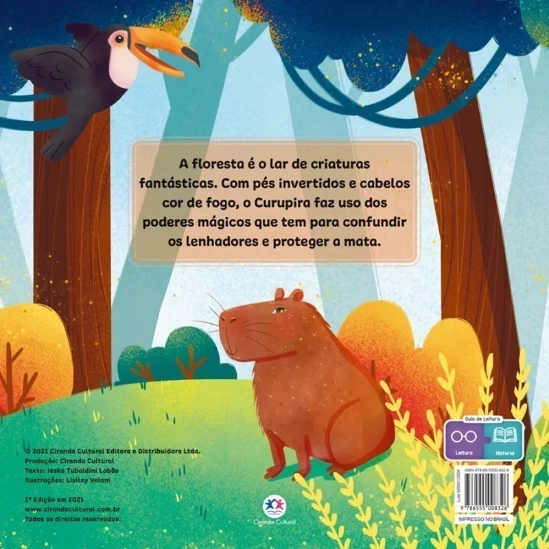 A floresta é o lar de criaturas fantásticas. De pés invertidos e cabelo cor de fogo, o Curupira faz uso de seus poderes mágicos para confundir os lenhadores e proteger a mata.