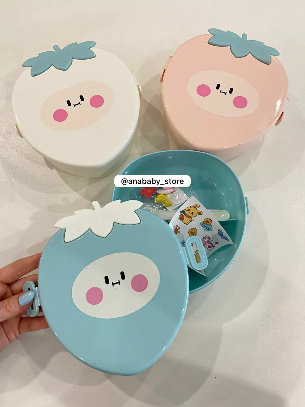 Marmita super fofa e divertida! Possui divisórias, garfo e colher, adesivo e aplique