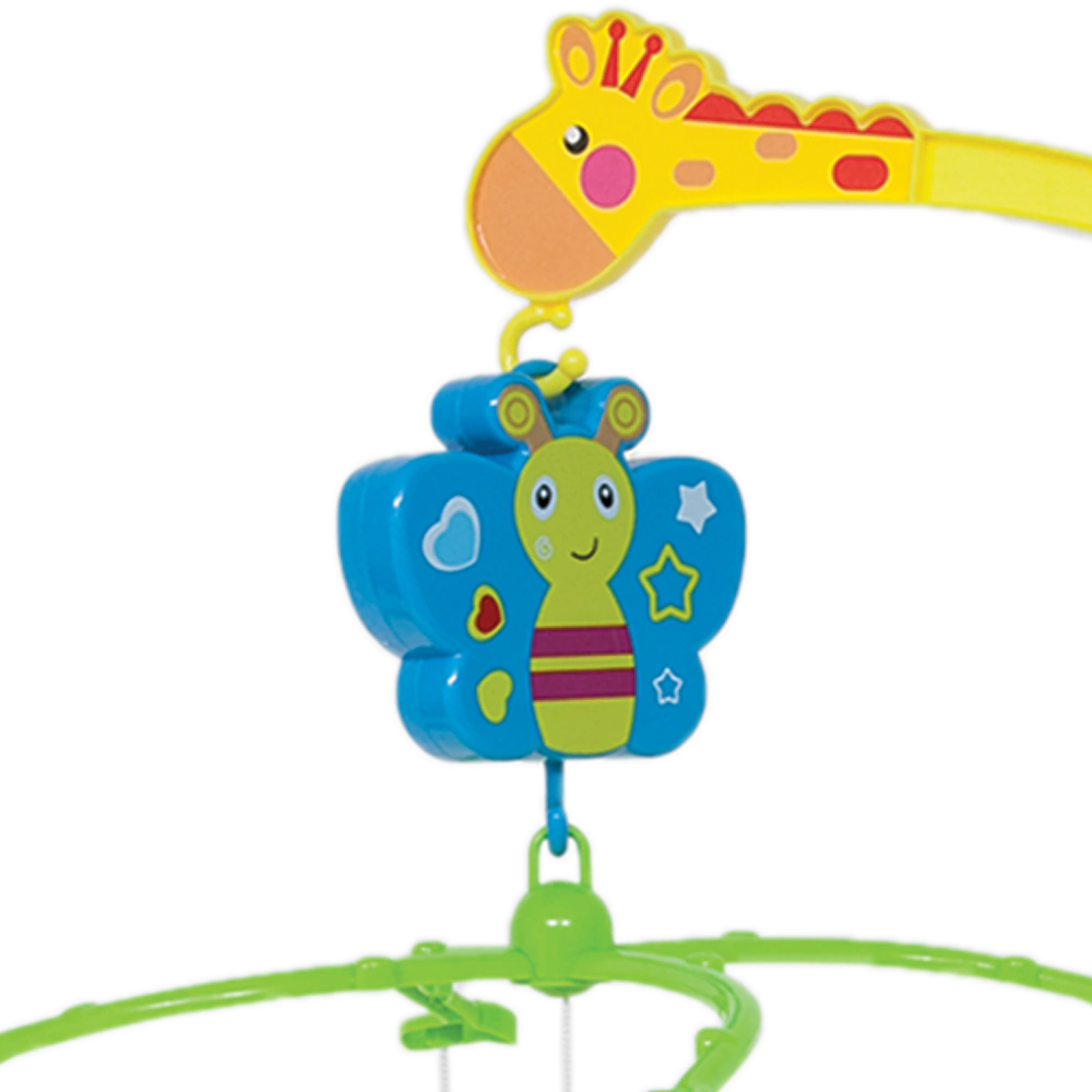 As cores vibrantes dos personagens e o som estimulam o desenvolvimento visual, auditivo e emocional dos pequenos. A base é uma girafa, a união é por uma borboleta, e tem ainda, o ursinho, o elefantinho, o pintinho, o coelhinho e o macaquinho, muitos bichinhos para o seu bebê se divertir!