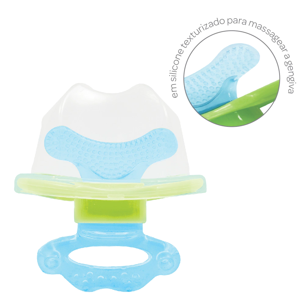 O massageador é macio, leve, fácil de segurar, possui formato lúdico, cores vivas e divertidas para entreter o bebê. Massageia a gengiva, diminuindo o desconforto do aparecimento dos primeiros dentinhos.
