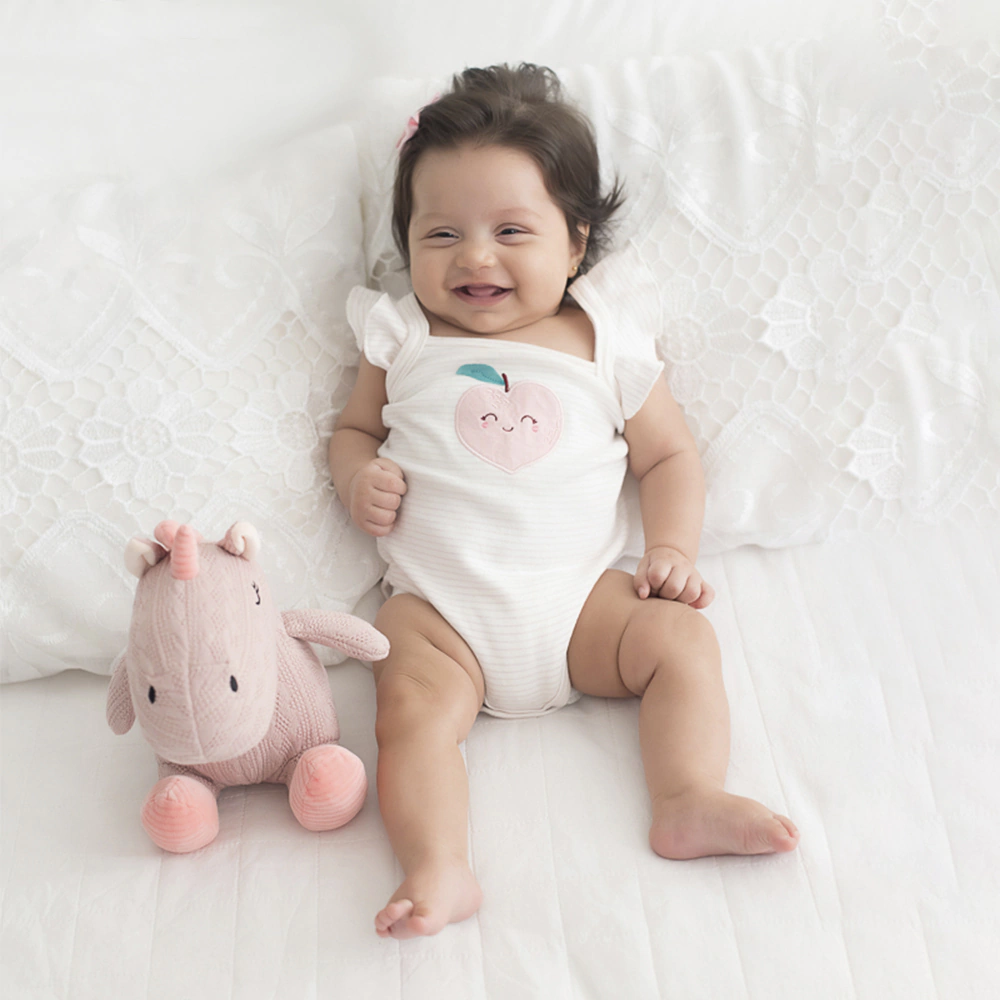 Esse simpático e fofo unicórnio confeccionado em pelúcia com textura de tricô é super fofo, proporciona sensação de acolhimento, tranquilidade e amorosidade. Com detalhes do rostinho bordado com muito carinho nessa pelúcia exclusiva. Excelente sugestão para presentear e a melhor companhia para brincar!