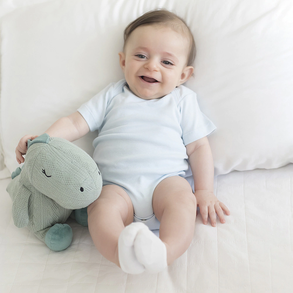 Esse simpático e fofo dinossauro confeccionado em pelúcia com textura de tricô é super fofo, proporciona sensação de acolhimento, tranquilidade e amorosidade. Com detalhes do rostinho bordado com muito carinho nessa pelúcia exclusiva. Excelente sugestão para presentear e a melhor companhia para brincar!